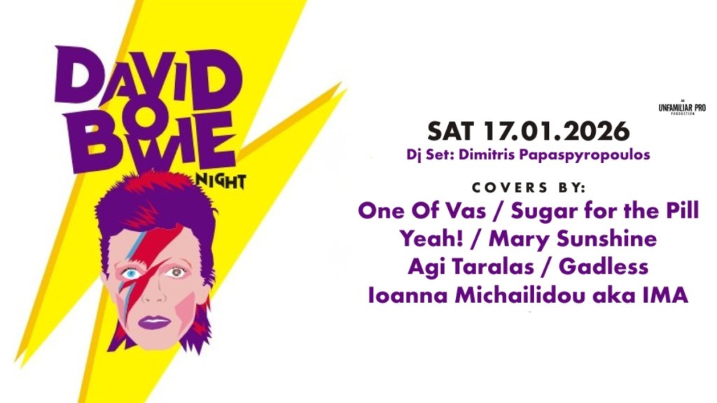 Στις 17 Ιανουαρίου, δέκα χρόνια και λίγες ημέρες μετά τη στιγμή που ο David Bowie άφησε τη Γη για να γίνει μύθος, το Temple φιλοξενεί μια βραδιά αφιερωμένη στο διαρκές φως και την καλλιτεχνική του κληρονομιά. Όχι ως μνημόσυνο, αλλά ως μια ζωντανή εμπειρία που τιμά την ελευθερία, τη μεταμόρφωση και την τόλμη που χαρακτήρισαν κάθε του βήμα.