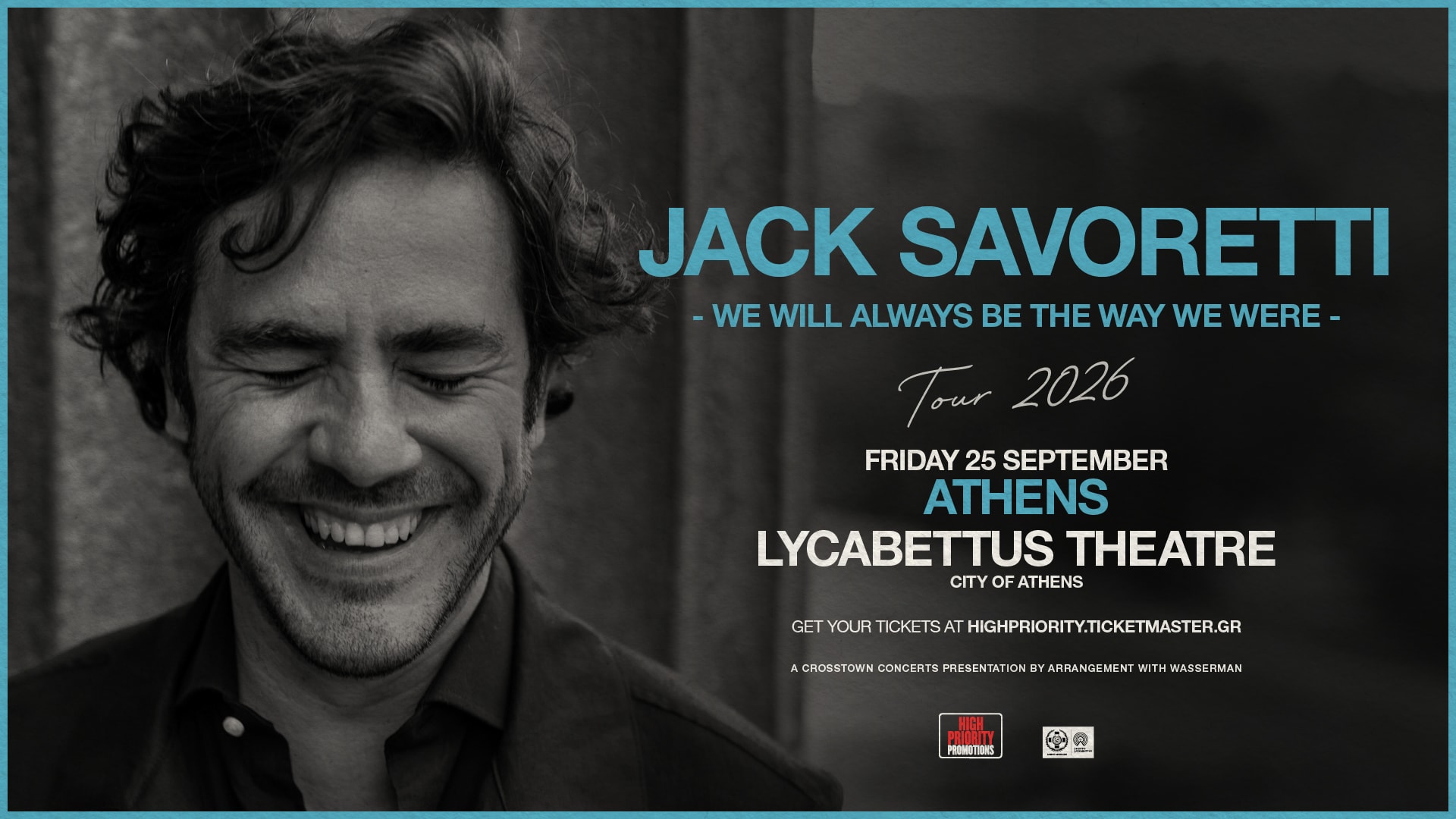 Ο Jack Savoretti, ένας από τους πιο αγαπητούς καλλιτέχνες του ελληνικού κοινού, έρχεται στην Αθήνα για μία μοναδική συναυλία την Παρασκευή 25 Σεπτεμβρίου 2026 στο Δημοτικό Θέατρο Λυκαβηττού, σηματοδοτώντας την πρώτη στάση του ευρωπαϊκού σκέλους της περιοδείας “We Will Always Be the Way We Were” Tour 2026.